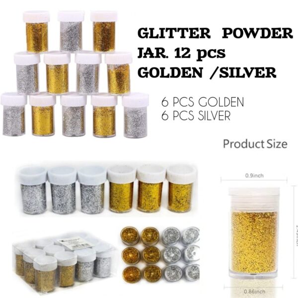 Glitter Powder Jar Golden / Silver (12 Pcs)