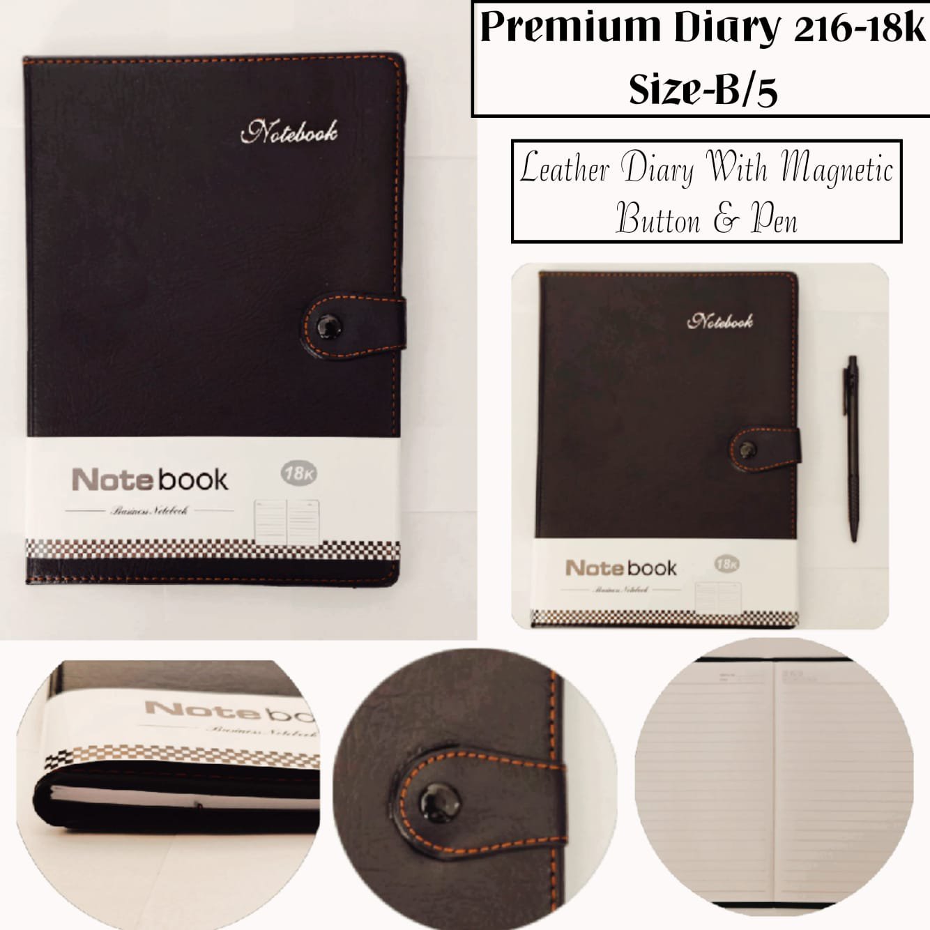 (Leather Diary With Magnetic Button & Pen)